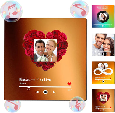 Custom Music Fridge Magnet with Photo Personalized Refrigerator Sticker for Christmas Valentine's Day Couple Gifts