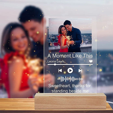 Custom Glass Art Acrylic Music Board Night Light, Photo Album Personalized Song Plaque to Valentine's Day