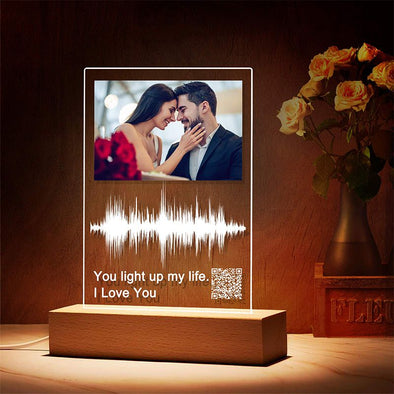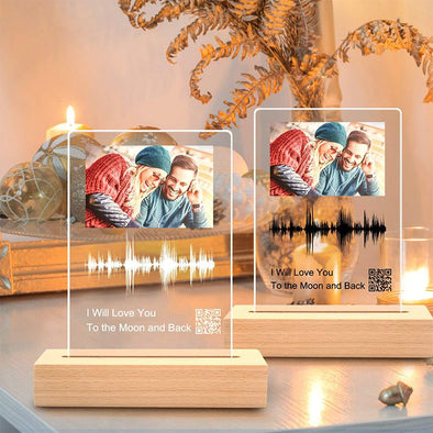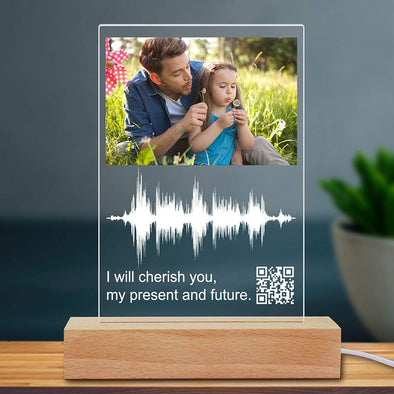 Soundwave Art Acrylic Photo Night Light, Personalised Sound Wave Artwork Acrylic Photo Plaque with QR Code for Mother's Day,Father's Day