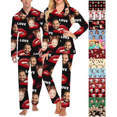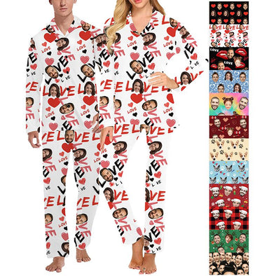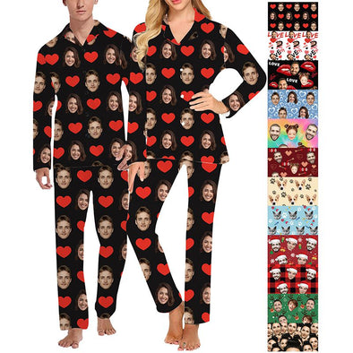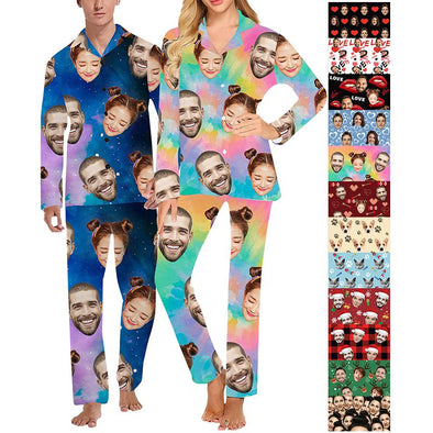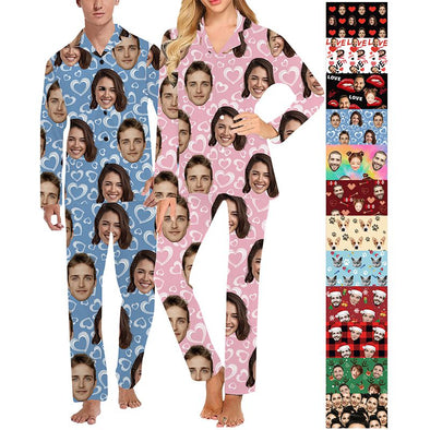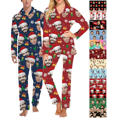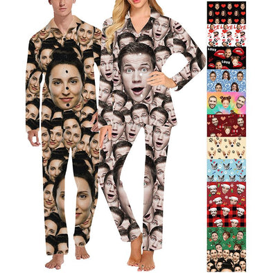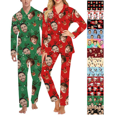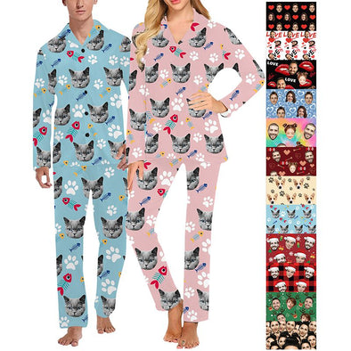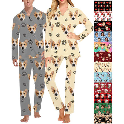 Custom Pajamas with Face Photo Pet Pictures Personalized Long Sleeves Pjs for Women Men Christmas Gift