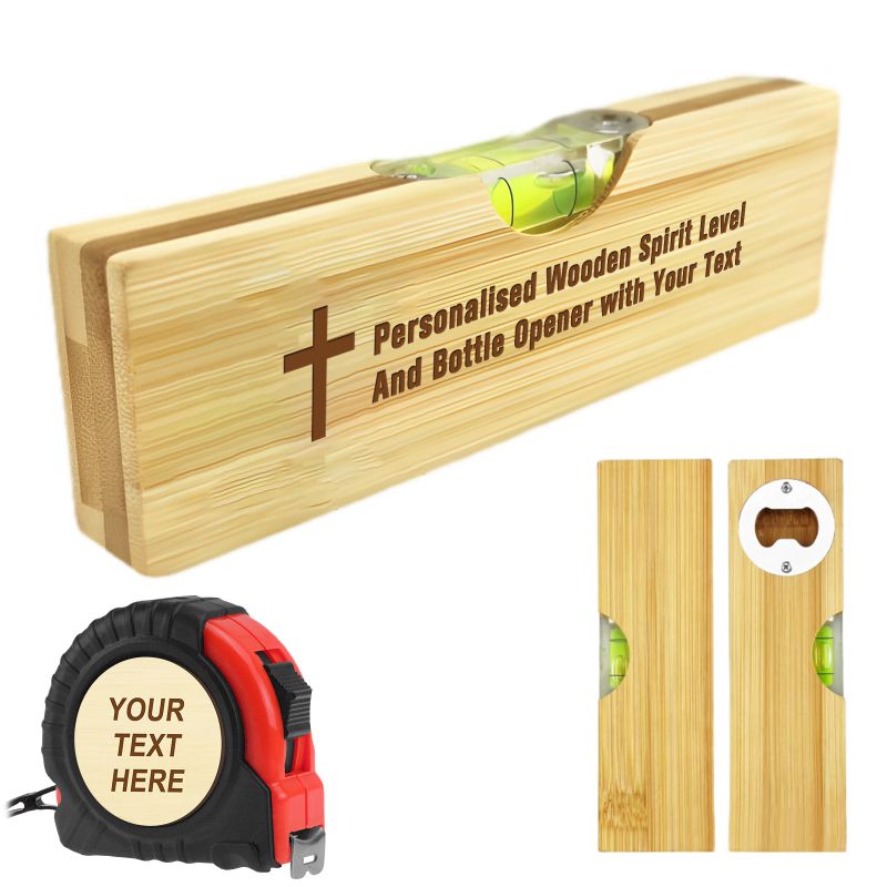Father Day Gift Personalized Bamboo Spirit Level Bottle Opener Custom Engraved Tape Measure for Dad Husband Grandad