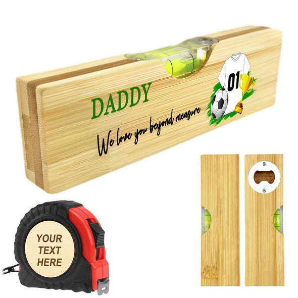 Father Day Gift Personalized Bamboo Spirit Level Bottle Opener Custom Engraved Tape Measure for Dad Husband Grandad
