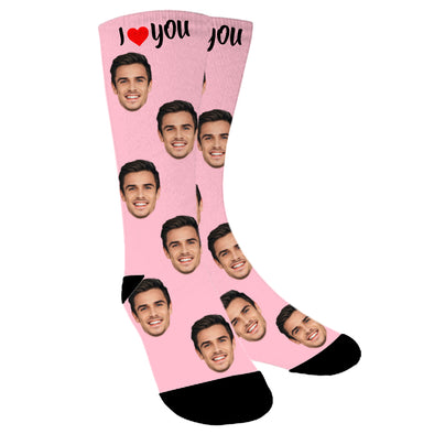 Custom Photo "I Love You" Printed Heart Face Socks