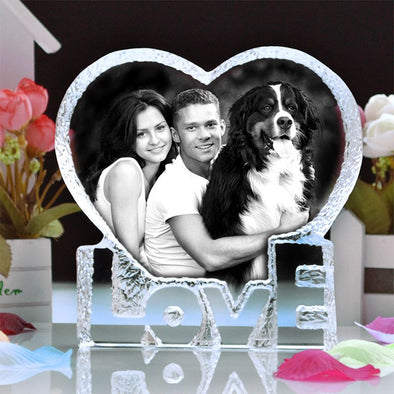 Personalized Custom 3D Heart Crystal Photo, Laser Engraved Picture, Customized Heart Crystal Photo with Free LED Base Included