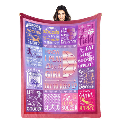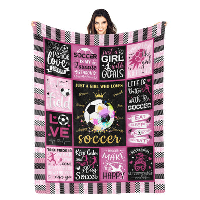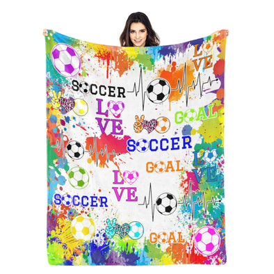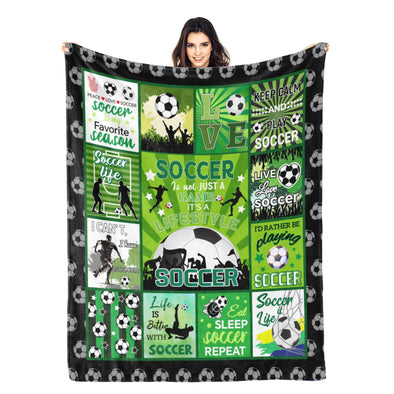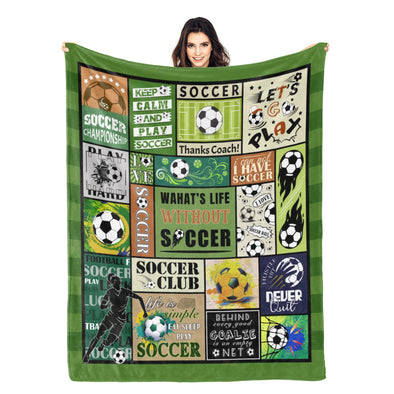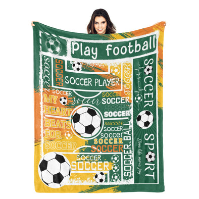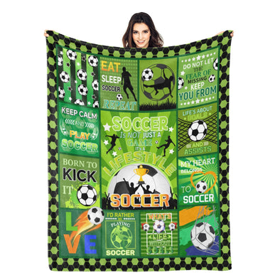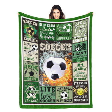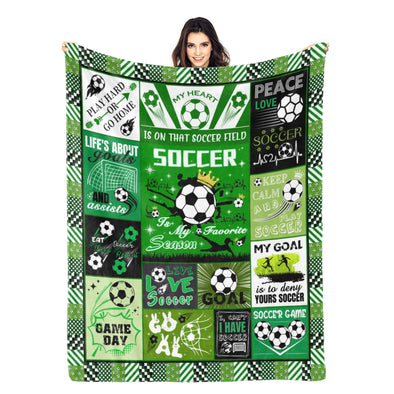 Soccer Blanket, Soccer Sports Themed Throw, Soft Nap Throw Blanket for Home Boys Girls Women Men Soccer Lovers Gifts