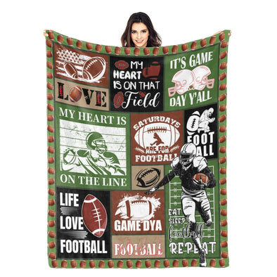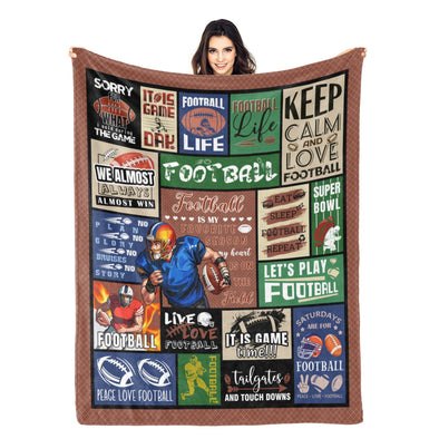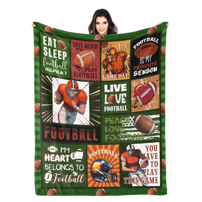 Football Pattern Blanket Fleece Throw Blanket Super Soft Warm Gifts for Baby Girls Boys Kids Mom Grandma Room Decor