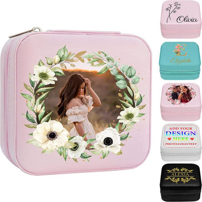 Personalized Jewelry Box, Customized Leather Jewelry Boxes with Photo/Name for Women, Girlfriend, wife