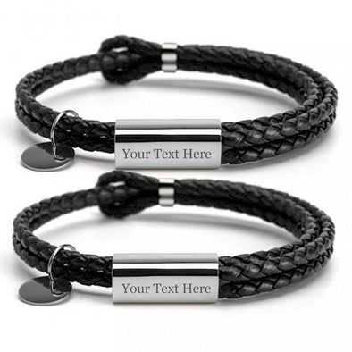 2 PCS Personalized Engraved Double Woven Leather Bracelet, Custom Couple Bracelet for Him/Her