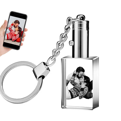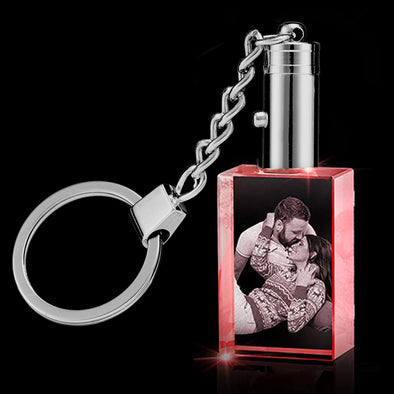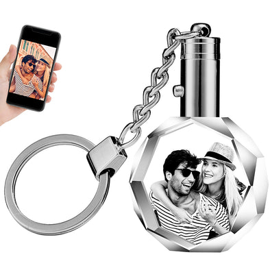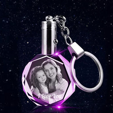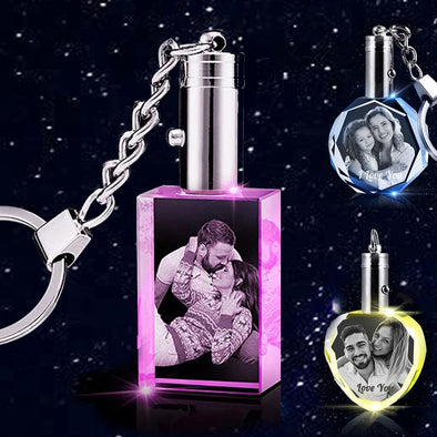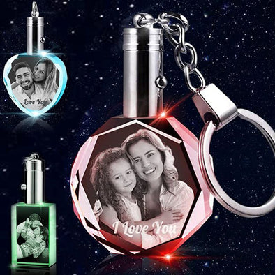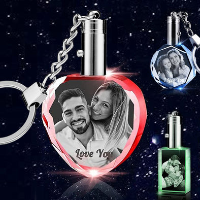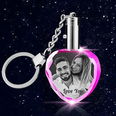 Custom Heart Crystal Keychain Picture for Valentine's Day,Mothers Day,Personalized Engraved Keyring with LED Light