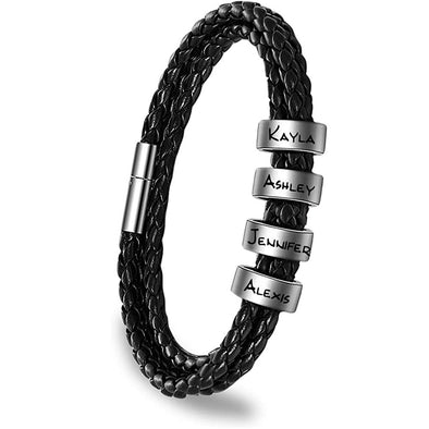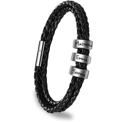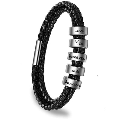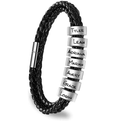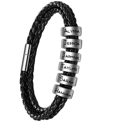 Personalized Engraved Bracelet for Men, Custom Leather Bracelet with Custom Beads