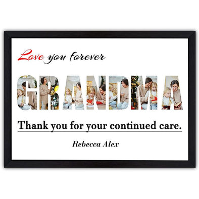 Personalized Grandma Photo Collage Prints Frame, Custom Picture Poster with Wooden Frame for Grandma