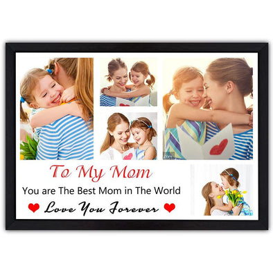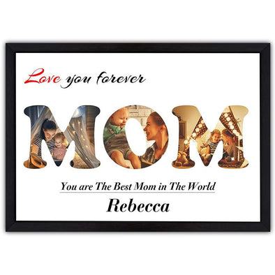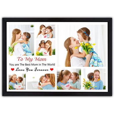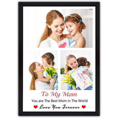 Personalized Photo Collage Prints Frame, Custom Picture Poster with Wooden Frame for Mom