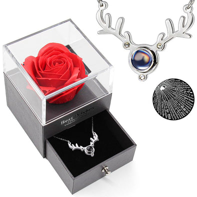 Eternal Rose and I Love You Necklace 100 Languages Projection for Valentine's Day, Mother's Day Gift