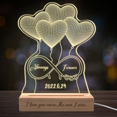 Personalized 3D Illusion Name Lamp, Custom Heart Lamp with Name Sign for Valentine's Day