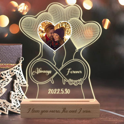 Personalized 3D Heart Night Light with Photo, Customized Acrylic LED Picture Night Lamp for Valentine's Day