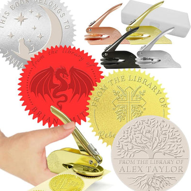 Book Embosser Personalized Hand-Held Embossing Stamp Custom Name Text Logo for Library Wedding Christmas Gifts