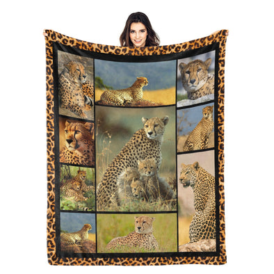 Cheetah Print Blanket Who Loves Leopard Throw, Plush Jungle Safari Print for Bed Sofa, Gifts for Girl Boy Kids Children