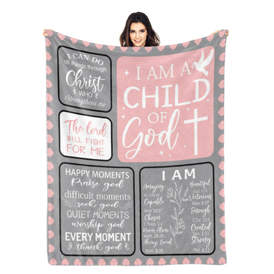 Christian Gifts for Women Blankets, I Am a Child of God Blankets, Inspirational Religious Birthday Gifts, Catholic Spiritual Gifts for Women