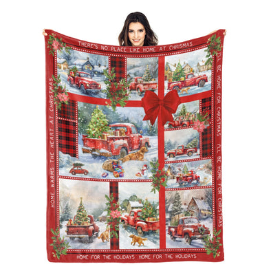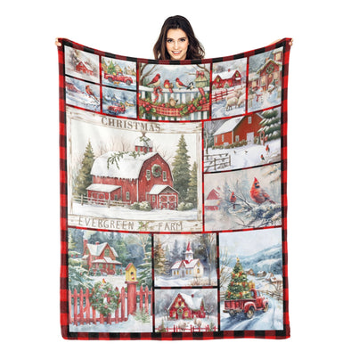 Christmas Blanket, Xmas Gift, Holiday Theme Red Throw for Couch and Bed Home Decor for Mom Women Girls Wife