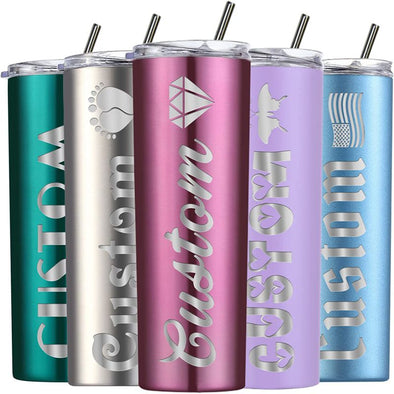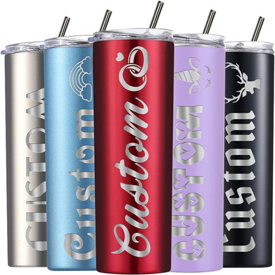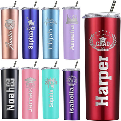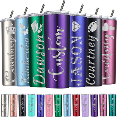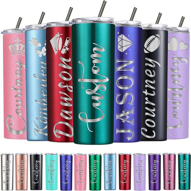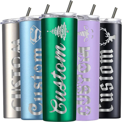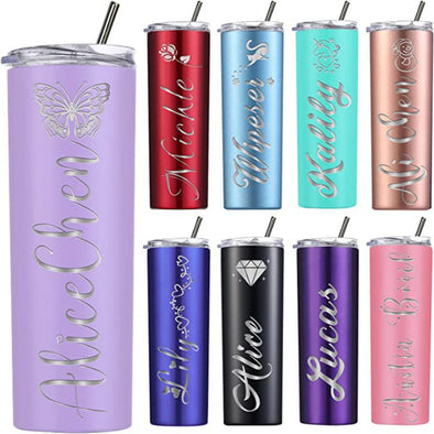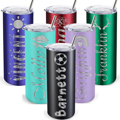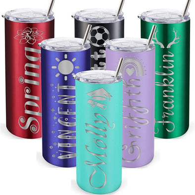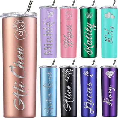 Personalized Skinny Tumbler 20 Oz, Customized Engraved Skinny Tumbler for Mother's Day Father's Day Gift