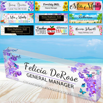 Desk Name Plates for Office, Personalized Custom Acrylic Nameplates for Teacher Bussiness