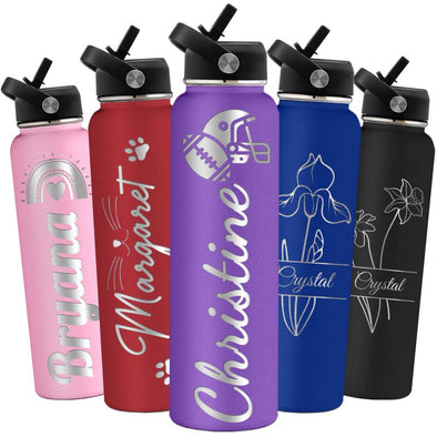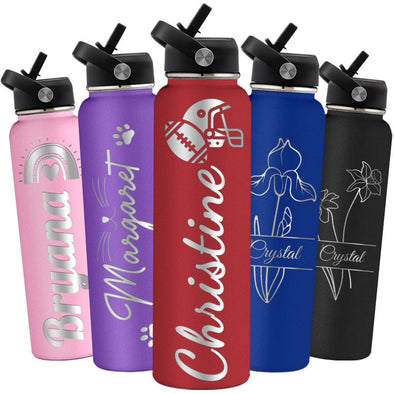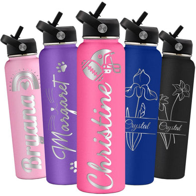 Custom Water Bottles 12oz/18oz/24oz/32oz/40oz Bulk, Personalized Stainless Steel Insulated Bottle Engraved Logo Name for School Kids Adult-1 PCS