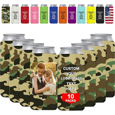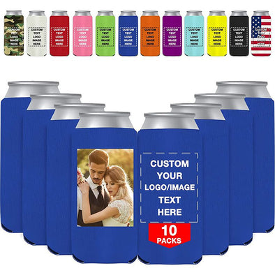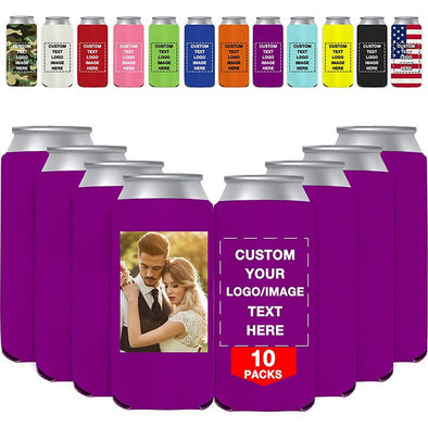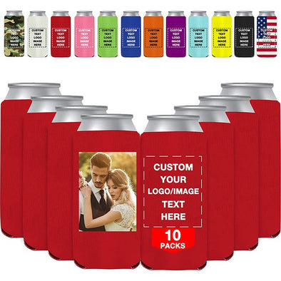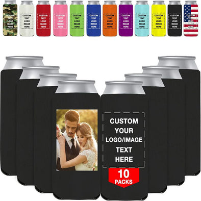 (10-150)PCS Custom Slim Can Cooler Sleeves Bulk, Personalized Beer Cozy Cans and Bottles Holder with Picture/Text for Wedding Birthday Party