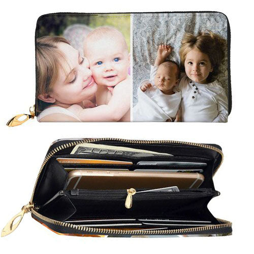 Personalized Photo Wallets for Women, Two side 3D Print Wallet for Wife, Mother Day Gifts for Her-Long Style