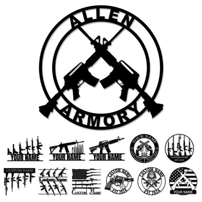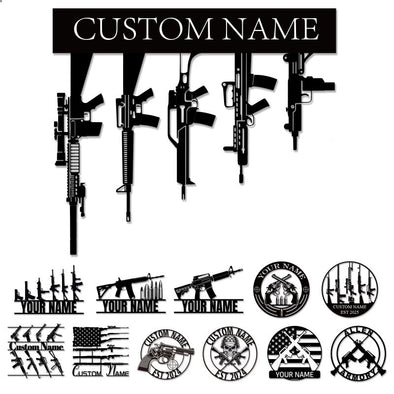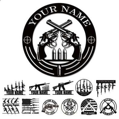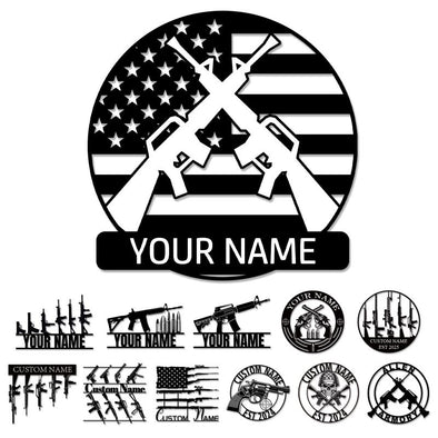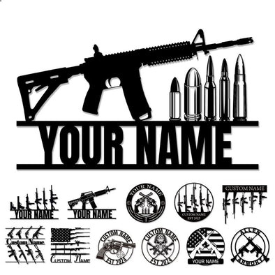 Custom Metal/Wood Gun Sign Customized Name Sign Personalized Wall Art Home Decor Gift for Him, Veteran