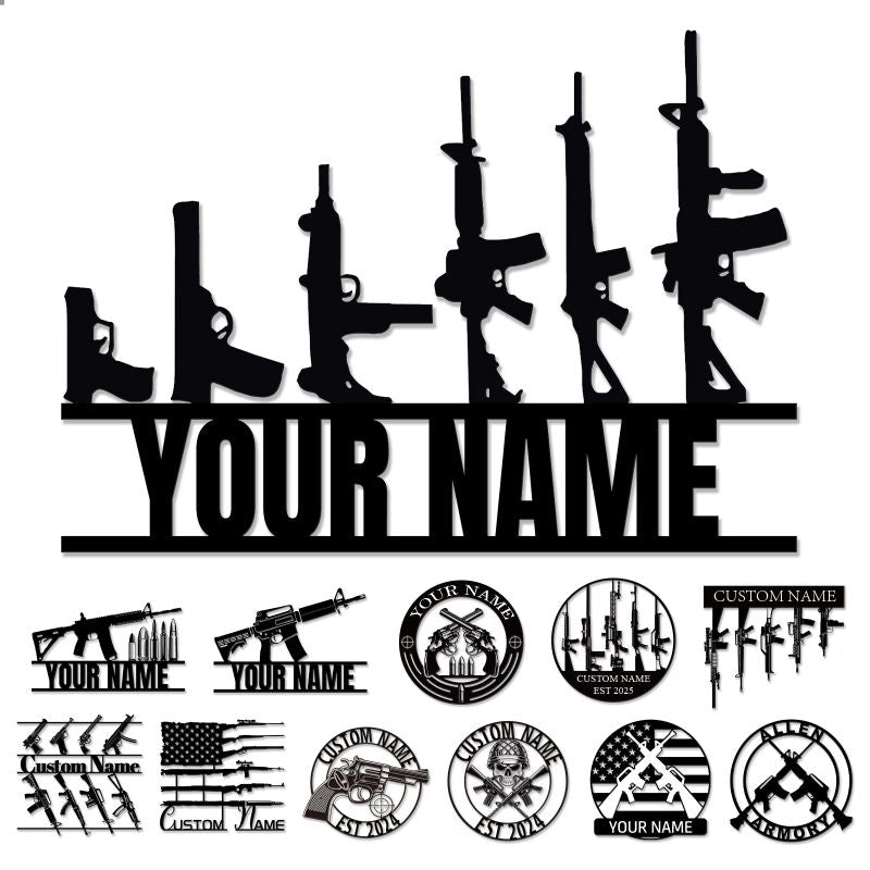 Custom Metal/Wood Gun Sign Customized Name Sign Personalized Wall Art Home Decor Gift for Him, Veteran