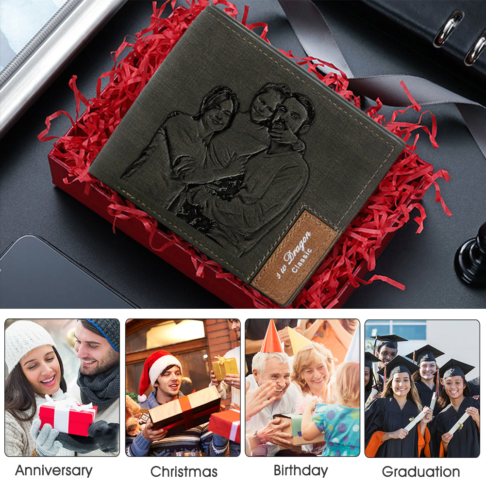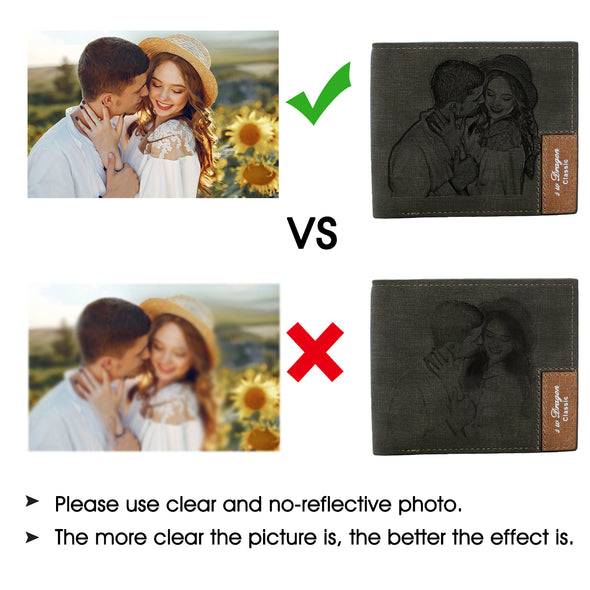 Personalized Engraved Wallet, Custom Photo Men Wallets for Dad Boyfriend Son Him