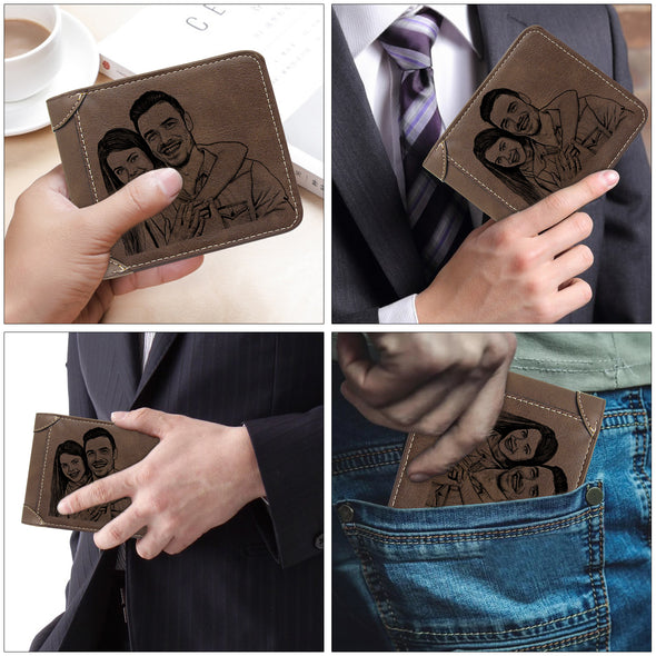 Custom Engraved Wallet, Personalized Photo Men Wallets for Dad Boyfriend Son Him Fathers Day
