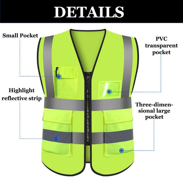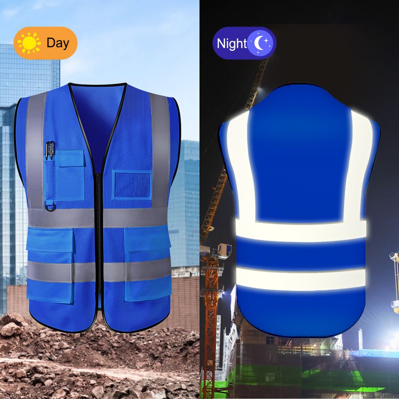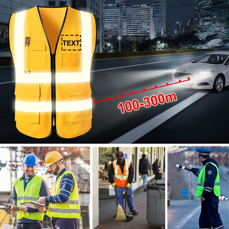 Custom Safety Vest Two Tone High Visibility Reflective Vests Bulk with Pockets Zipper Personalized Logo Text for Women Men