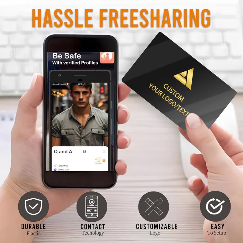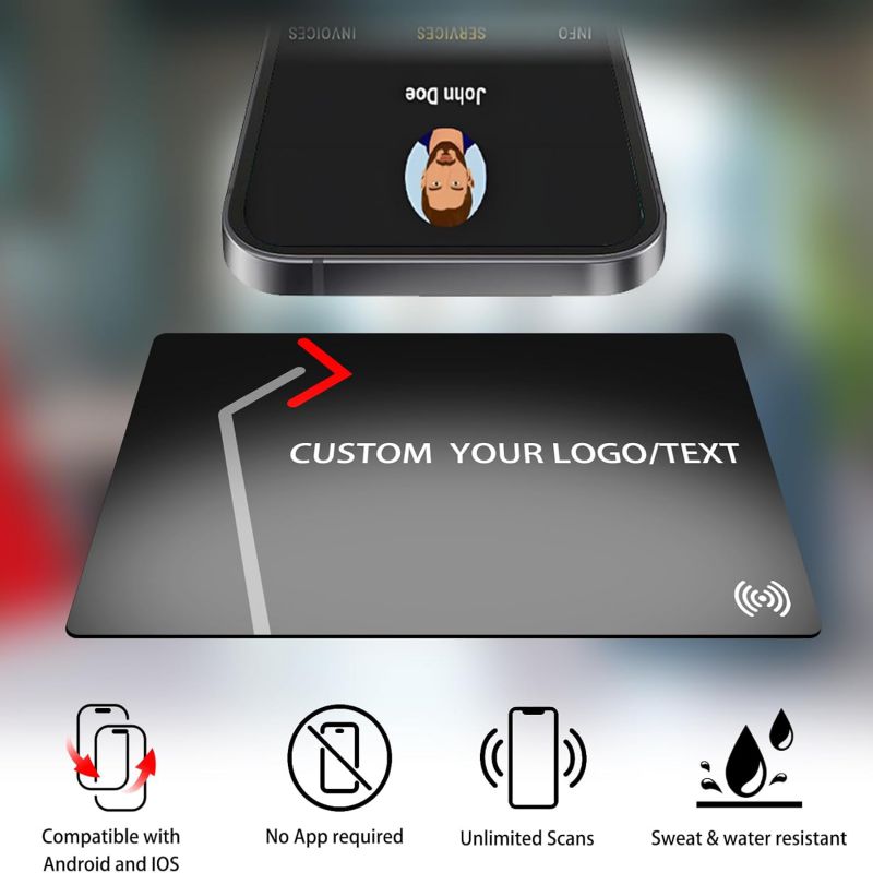 Customizable Digital Business Card with QR Code Custom NFC Card Logo Tap to Share Technology Compatible with iPhone & Android