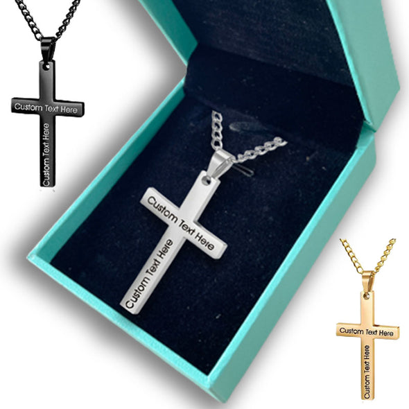 Engraved Cross Necklace for Men, Custom Mens Cross Necklace Engraved with Your Text