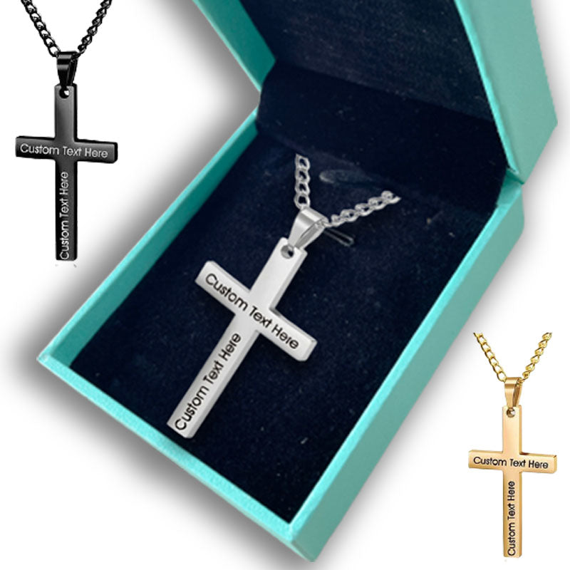 Mens Cross Necklace with Engraving, Custom Cross Necklace for Men with Your Text